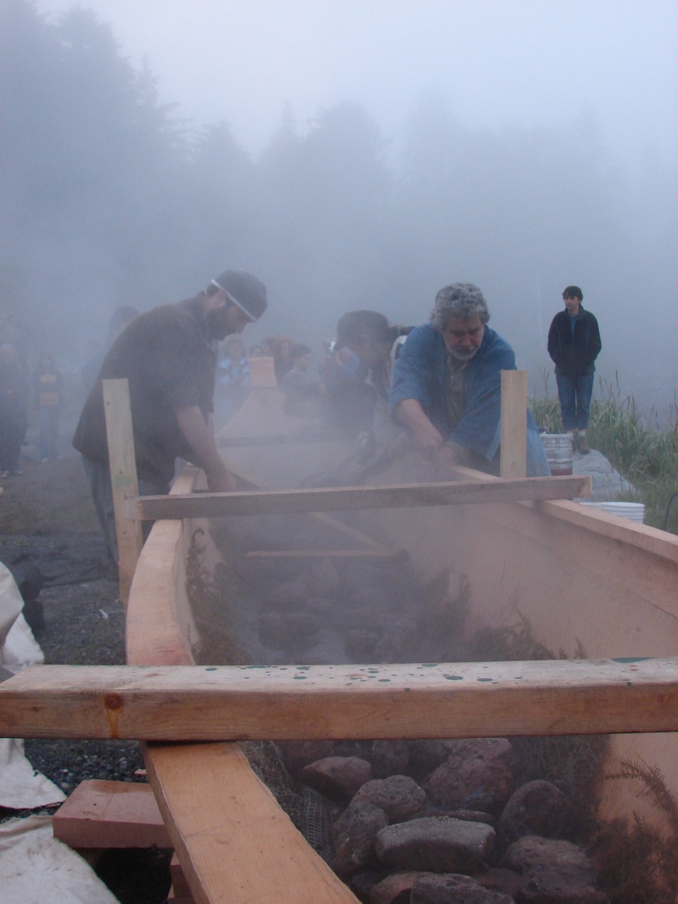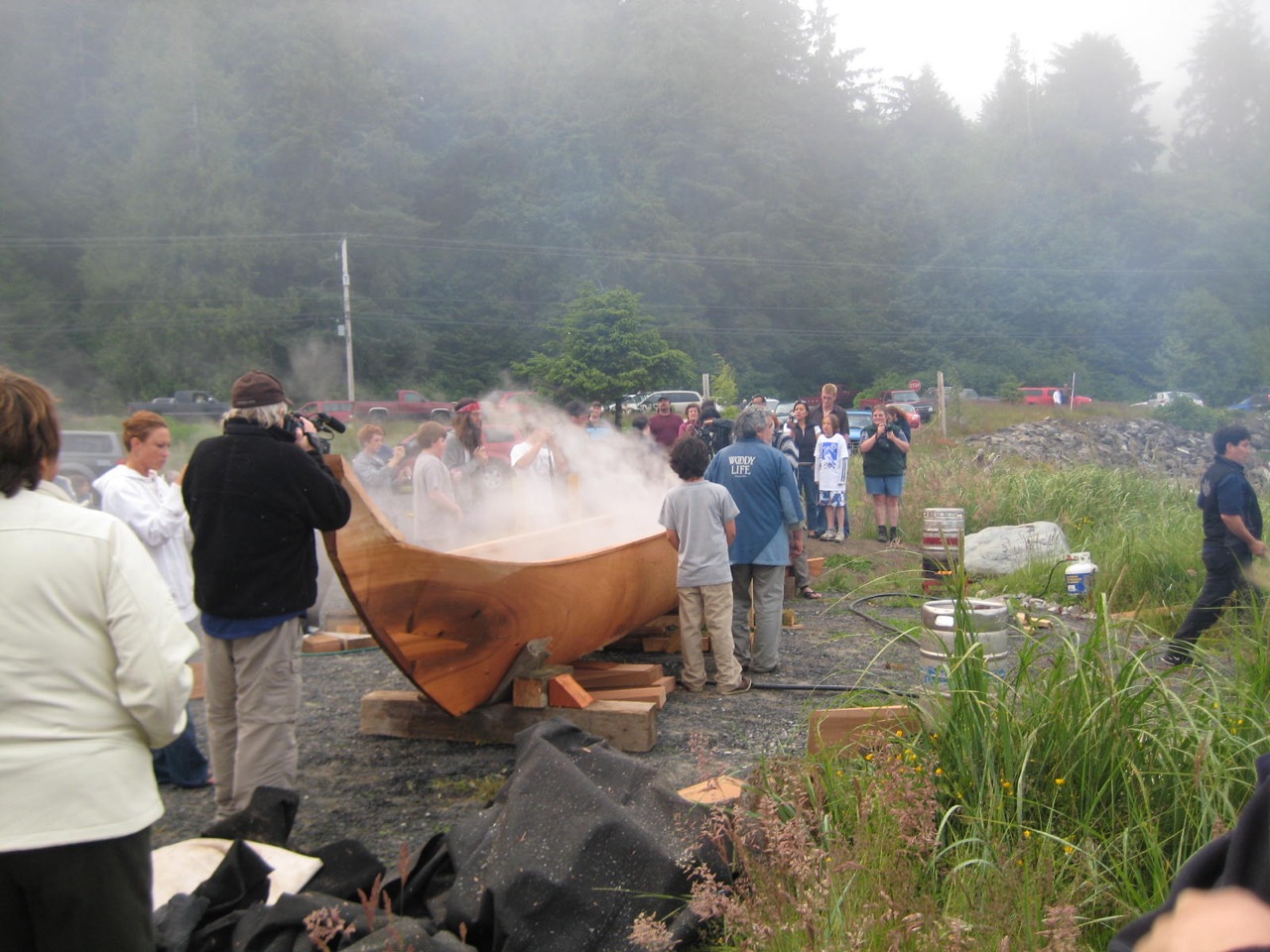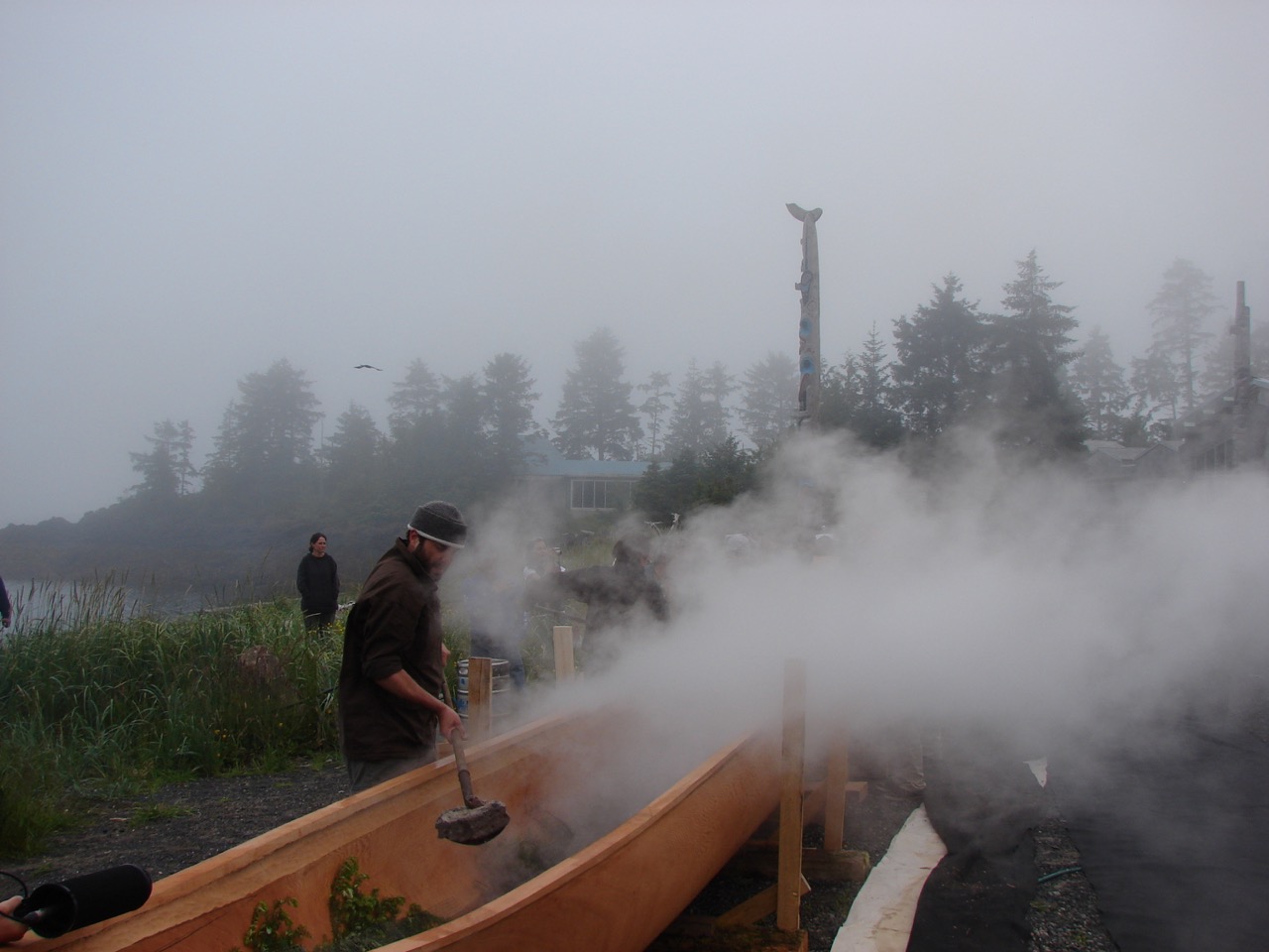Waiting with the steaming canoe