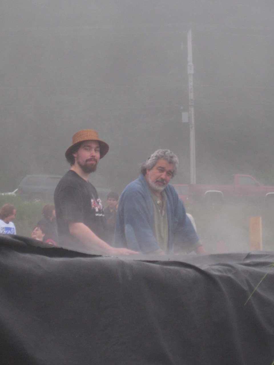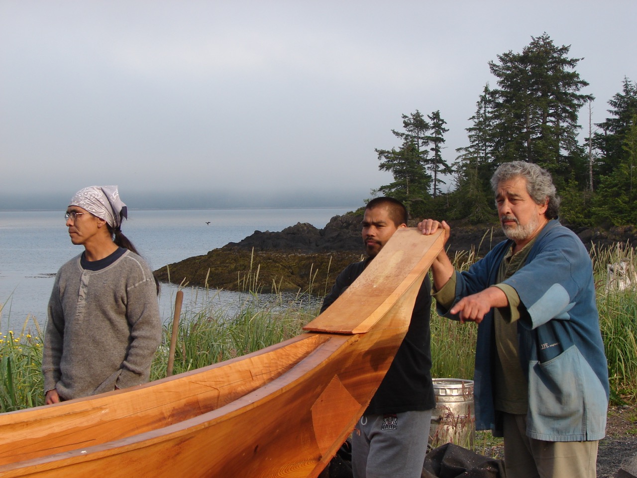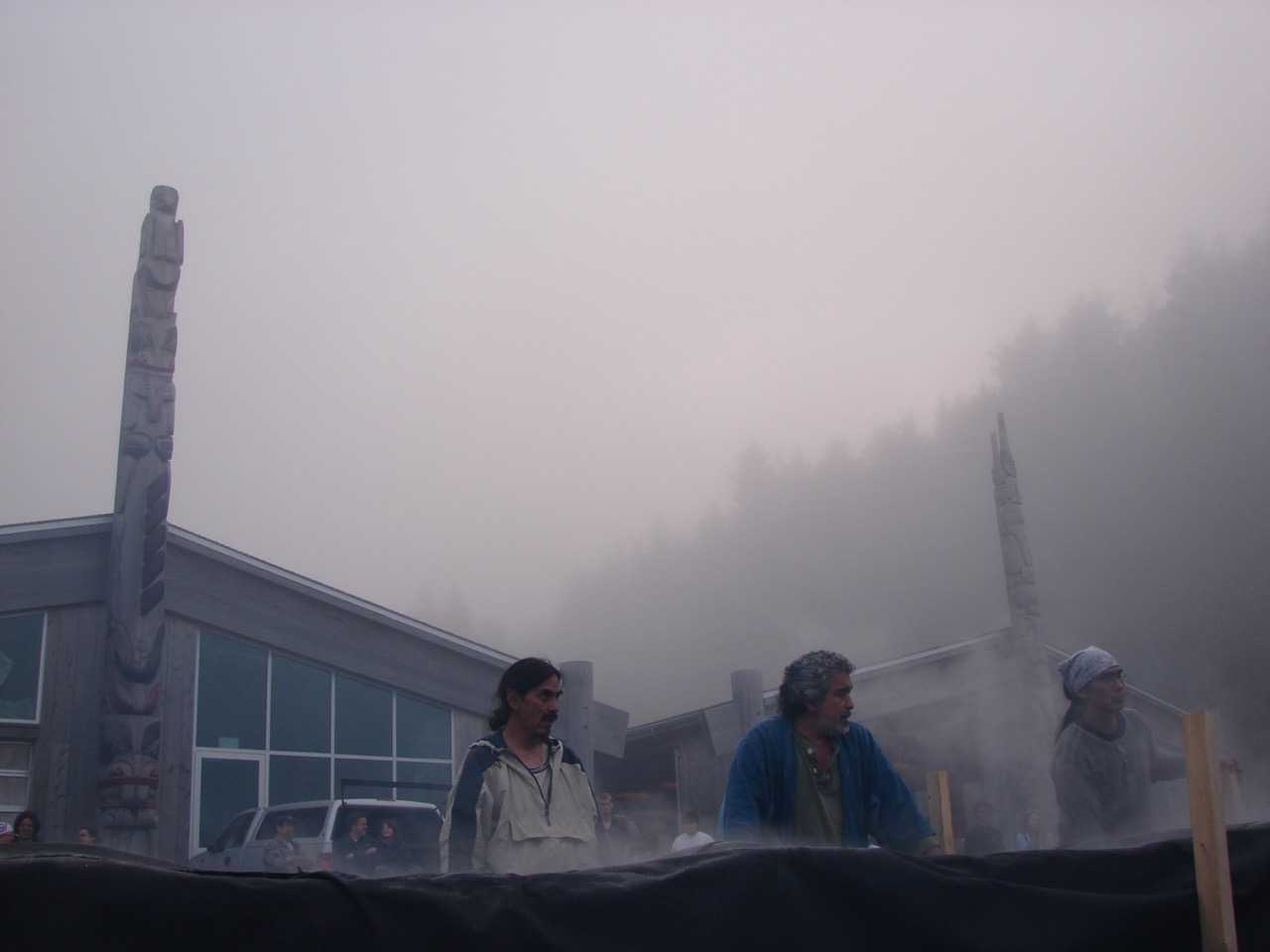 Waiting with the steaming canoe