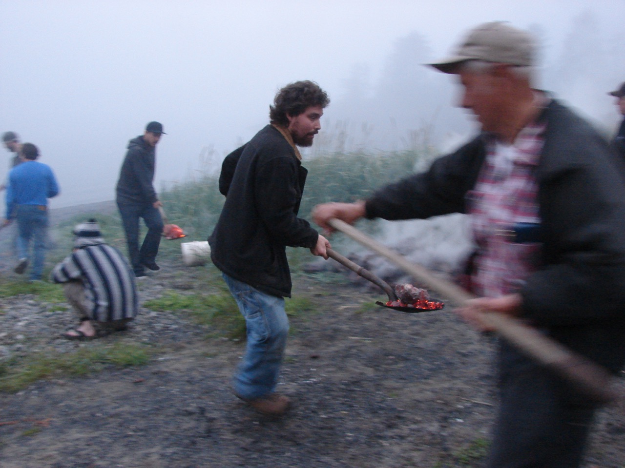 Taking the rocks from the hot coals