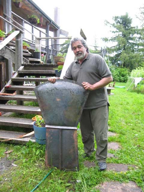 Putting in the hot rocks on cedar branches